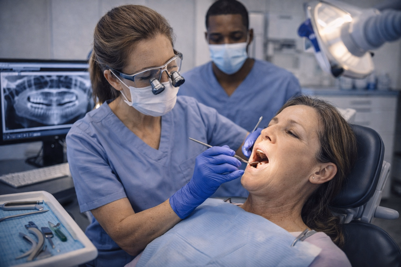 Dental treatment encompasses a broad spectrum of medical procedures focused on maintaining and improving oral health. Dental treatment is crucial in preventing and addressing oral health issues, from routine check-ups and cleanings to more complex interventions, such as fillings, extractions, and root canals. Professional dental care not only addresses common problems like cavities and gum disease but also provides cosmetic treatments like teeth whitening and orthodontic procedures to enhance the aesthetics of a patient's smile. Dentists utilize advanced technology and evidence-based practices to diagnose, treat, and prevent oral health issues, ensuring that patients enjoy optimal dental well-being and maintain a confident, healthy smile.